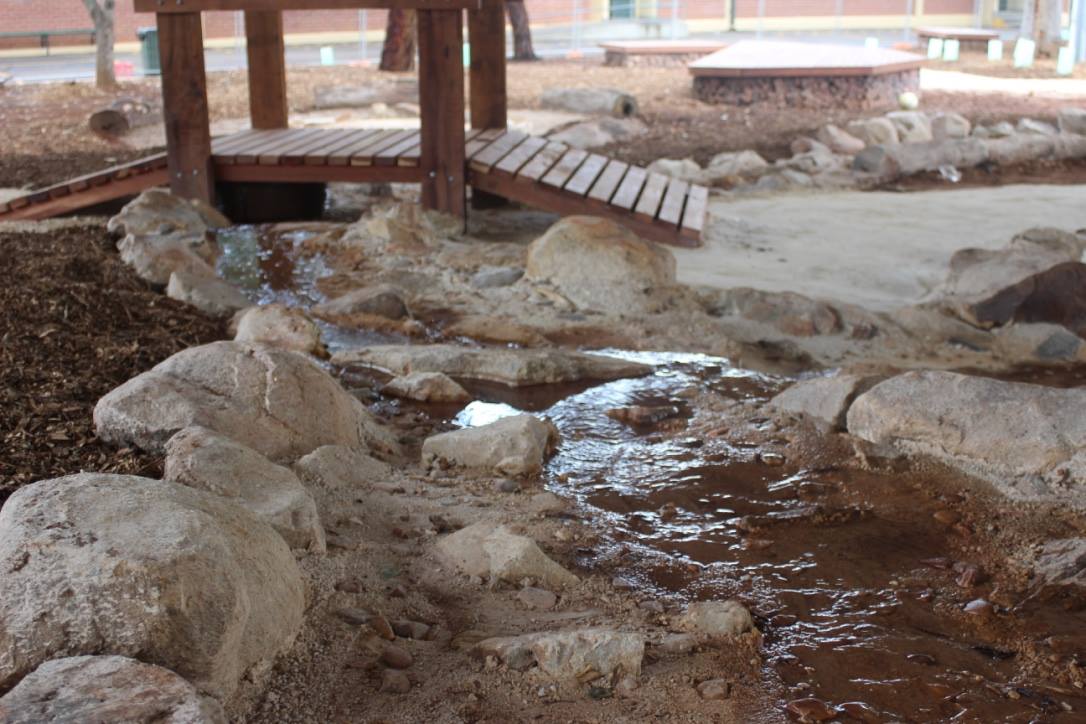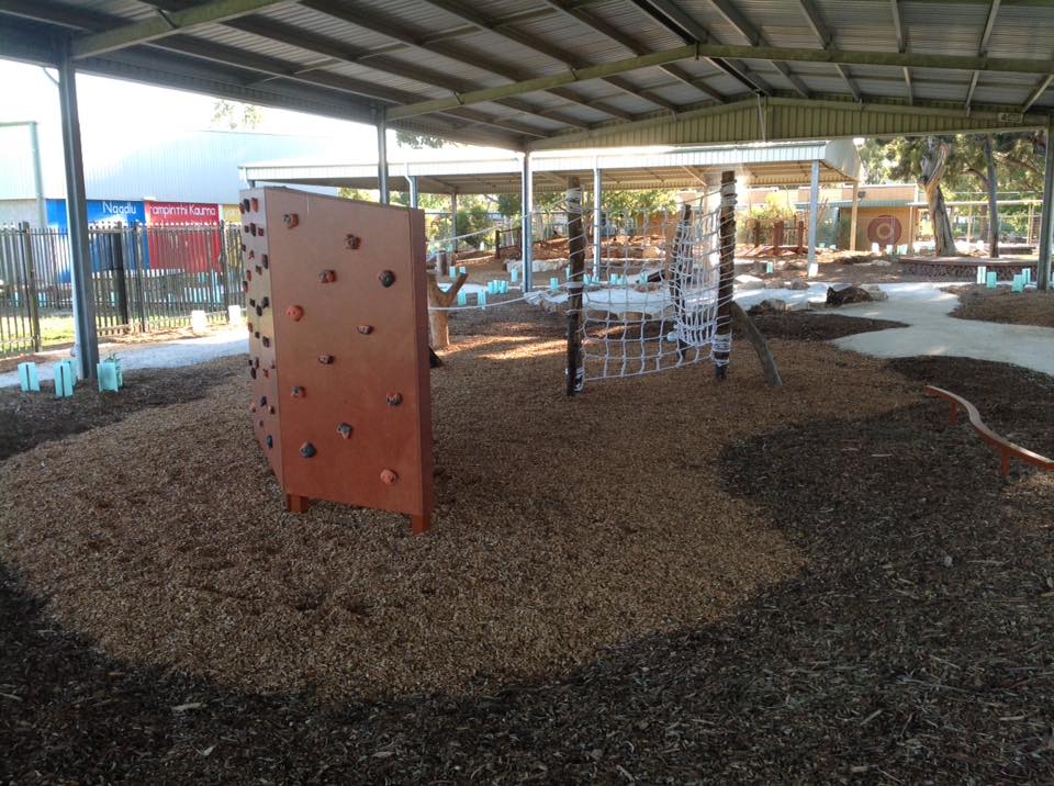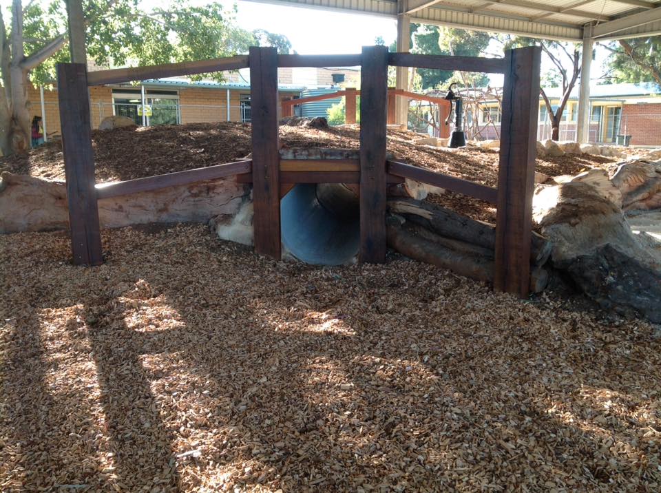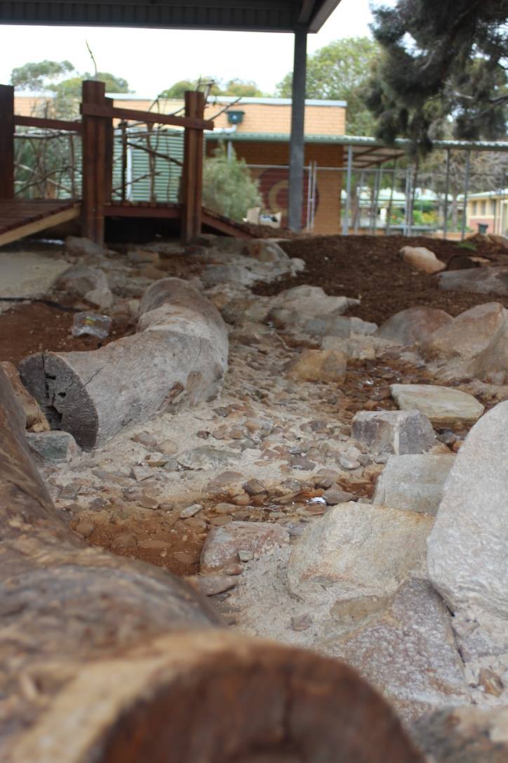 Dirtwork Landscapes were engaged to construct the nature play space after the children of Elizabeth Grove developed a concept with Simon Hutchinson of Climbing Tree. The children at Elizabeth Grove made the bold decision to remove two old playgrounds and replace it with a more natural and challenging space with a climbing wall, rope challenges, a dome, an enormous sandpit or two and water course with a tunnel all ages can get to work in and challenge their learning.